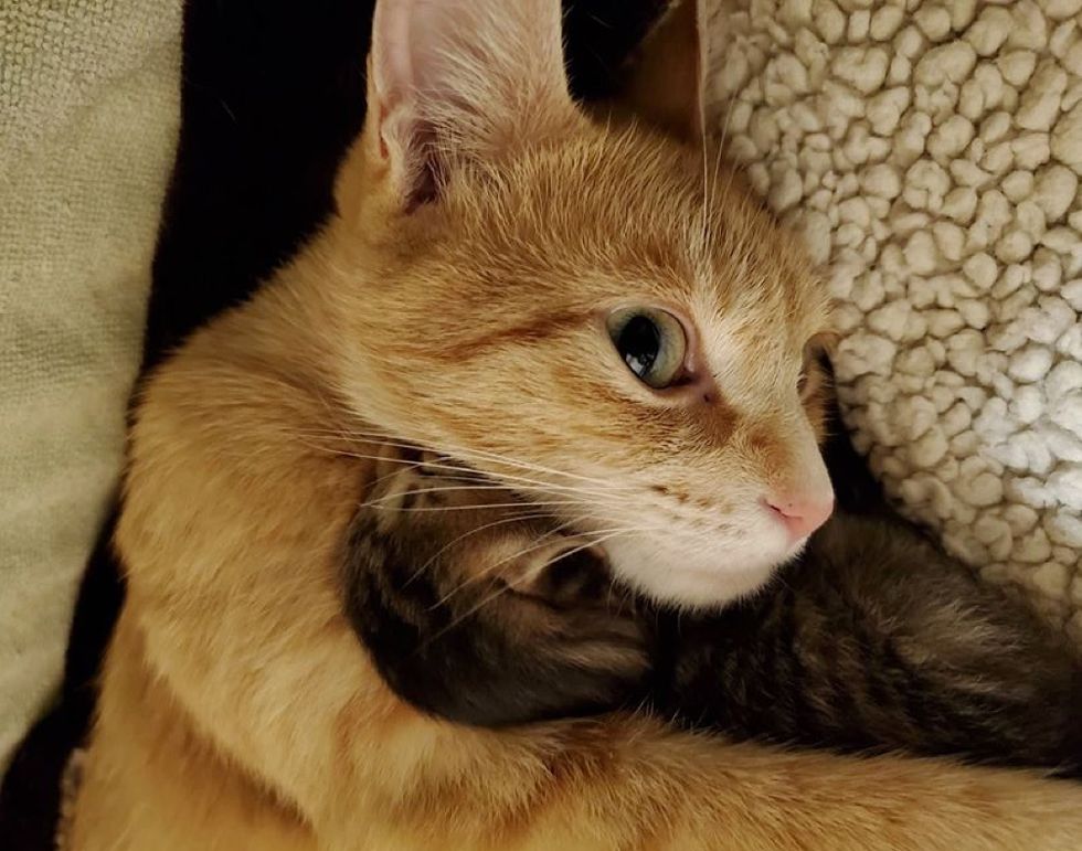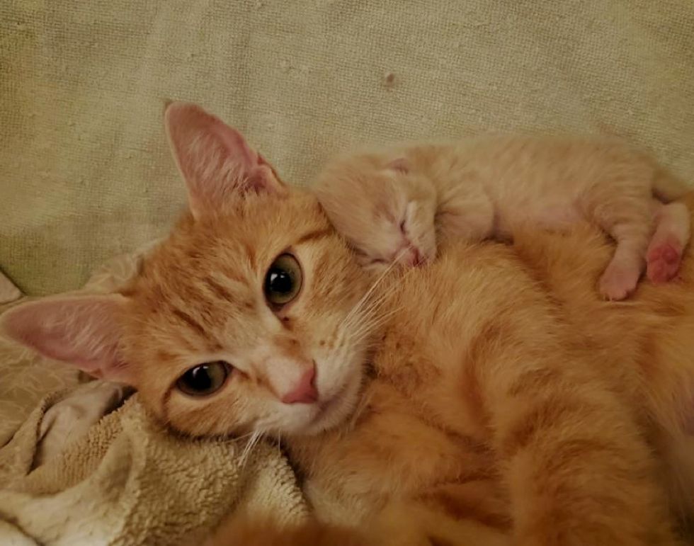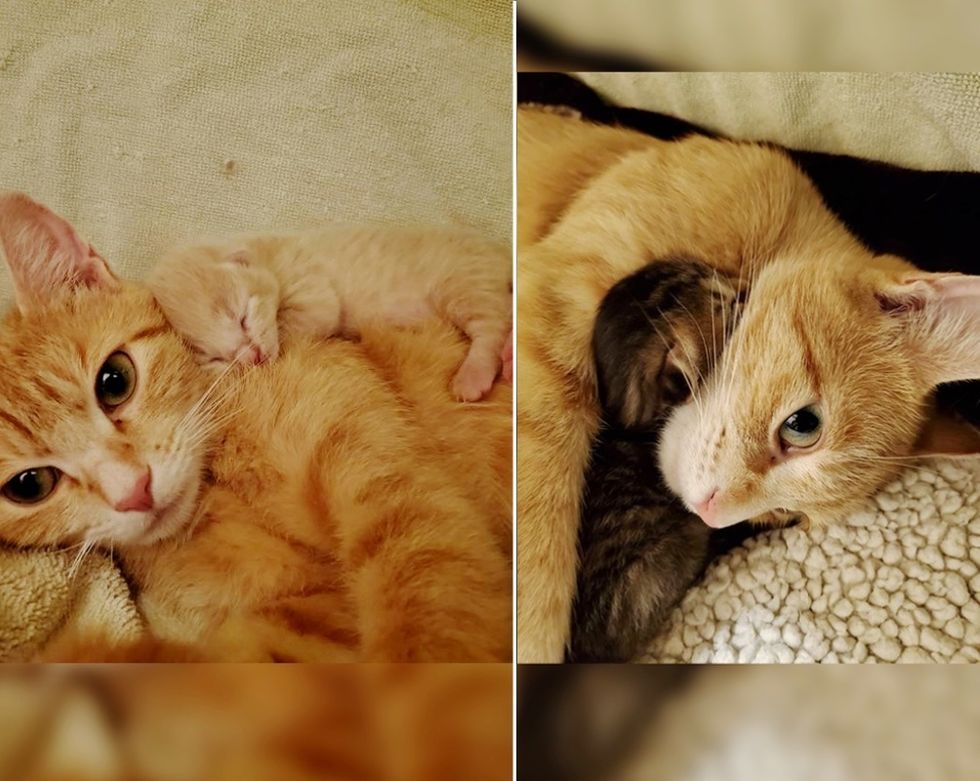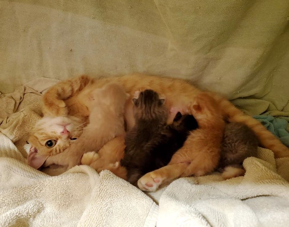 Earlier this year, Meow Village, an all-volunteer rescue group in Aurora, Oregon, received a call about an orange tabby needing rescue. A woman found the stray cat under her porch with a litter of kittens.