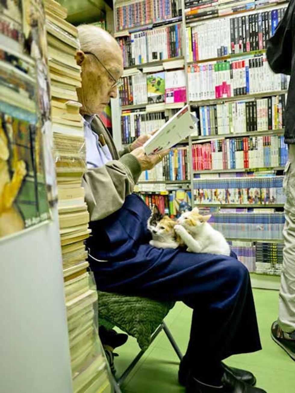 The bookstore is a permanent home to many cats who otherwise would be roaming the streets. They feel very loved and happy there.