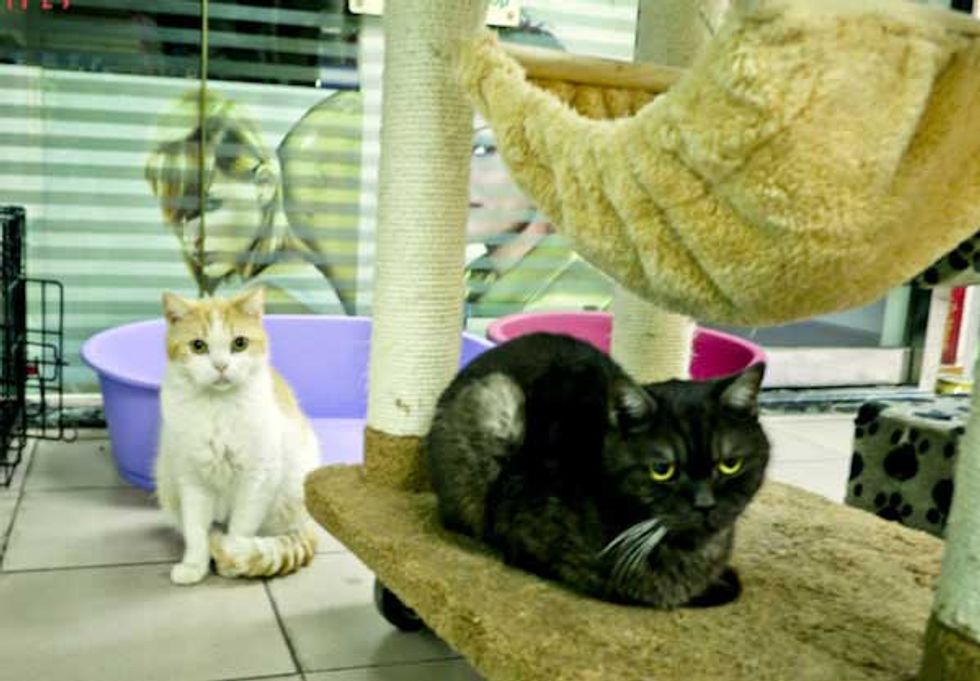 A small bookstore (SAM KEE Bookstore, 森記圖書) in North Point, Hong kong became a little haven for many local homeless and stray cats. According to Chunli who visited the store, the owners of the bookstore have taken in many homeless cats and let them sleep inside, play and hang out with their customers. The kitties are well fed and given plenty of love. They enjoy patrolling the aisles and napping on a stack of books or a customer's lap.