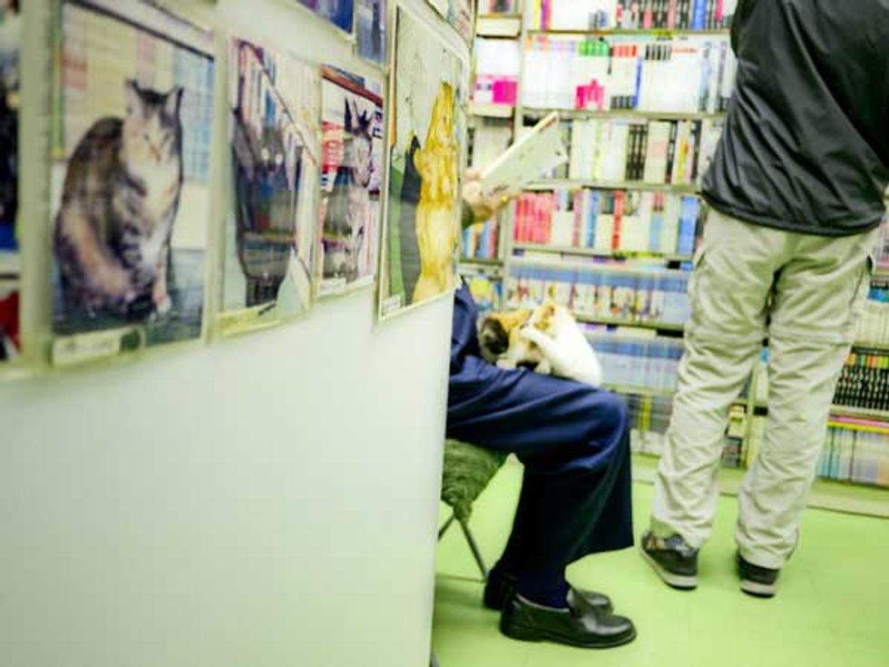 The owners of the bookstore put up photos of each cat they adopted from the streets and created a gallery in the store.