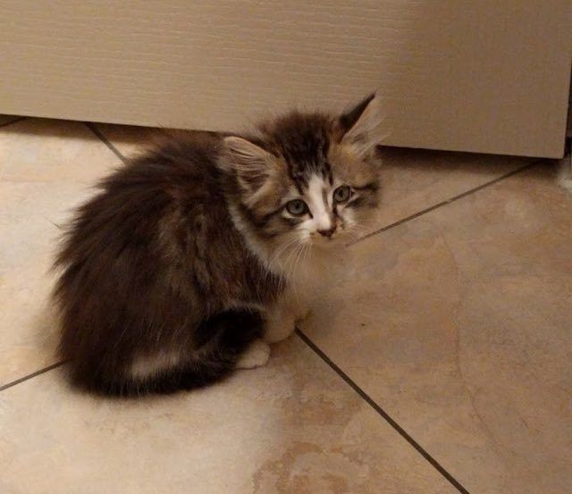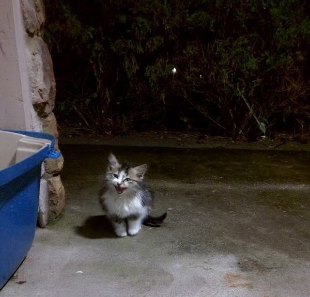 It was a dark, cold stormy night when a couple heard a kitten cry coming from outside. They rushed out and found a little kitten all soaked up, meowing for help.