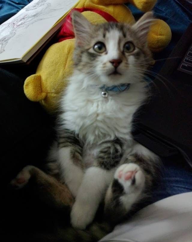 It took time, but eventually the kitten decided to accept her human friends. "(She) even stooped to eating the pitiful offering we had provided."