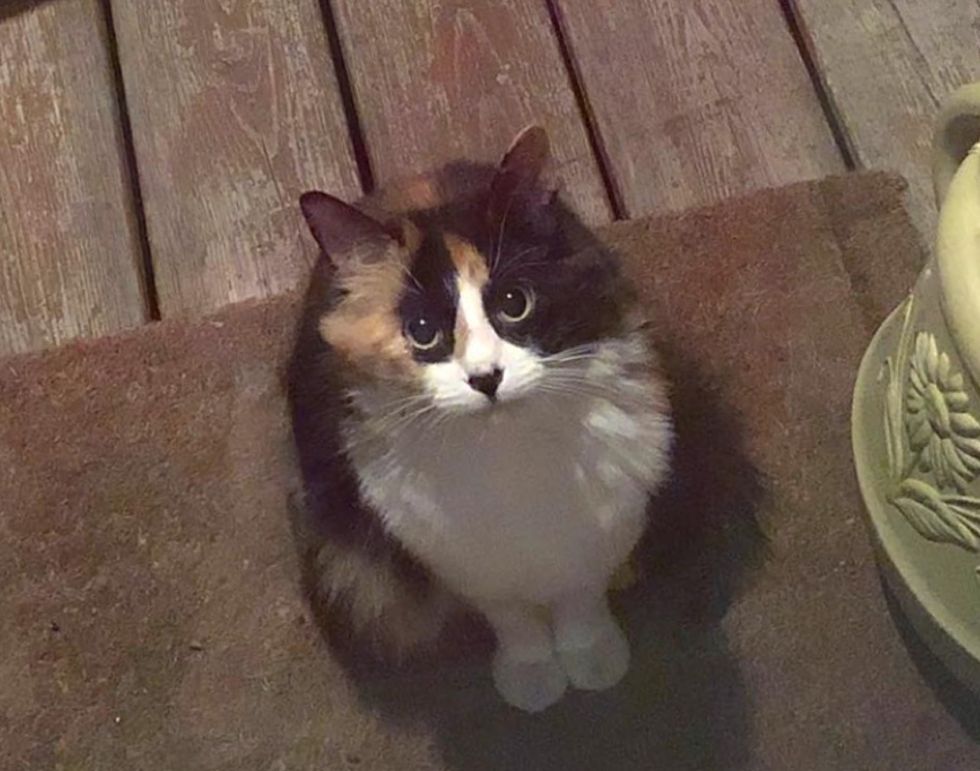 The calico would wait outside the front door every evening for some dinner. She eventually warmed up to the people that were kind to her, and would stay outside by their door at night.
