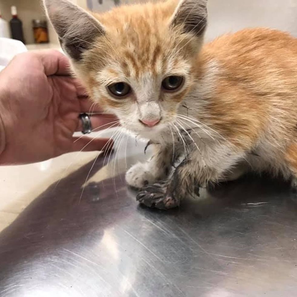 Justin took him to the vet and got him cooled down and cleaned up. One of his friends generously offered to pay for the vet bill so the kitten could get the care he needed.