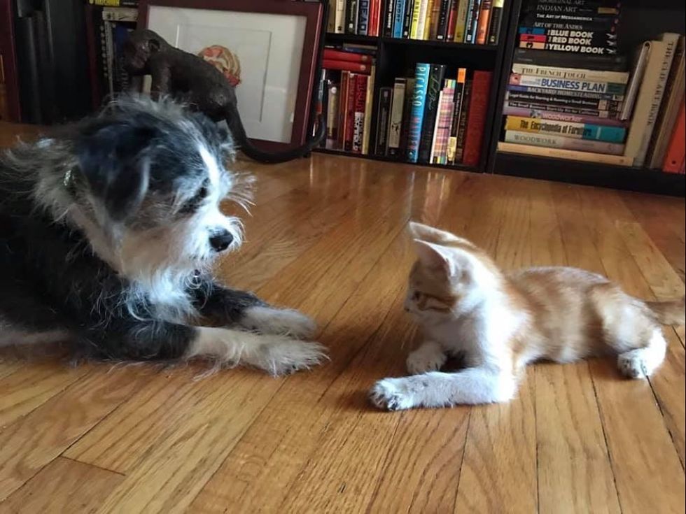 "I was pretty steadfast in this guy remaining a foster until I saw how much he blossomed with the animals at my apartment."