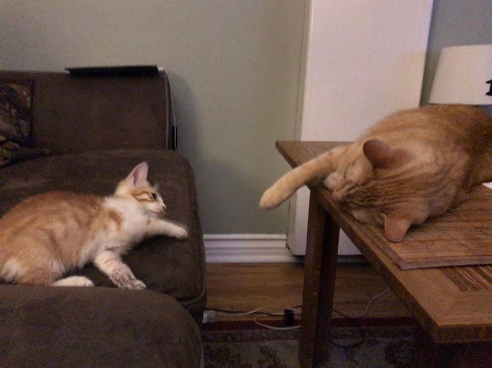 The ginger boy was a bit shy around people but Ollie took him under his wing.