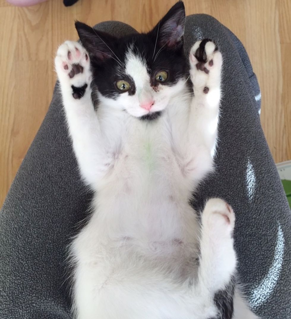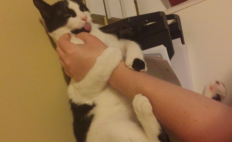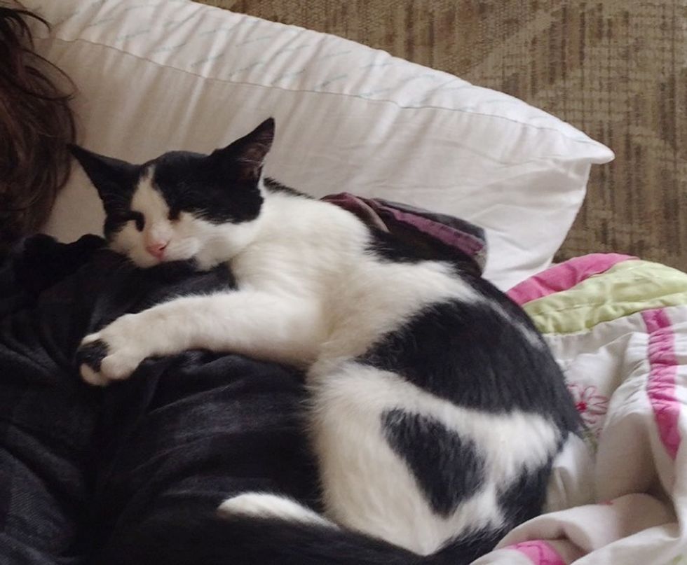 "Now she's still a little feral, but she's the happiest, most comfortable cat we've ever seen."