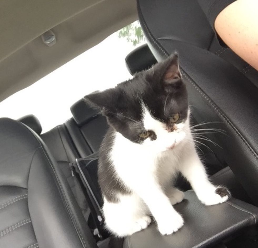 A tiny stray kitten ran up to a young woman when she was outside her apartment complex in Kentucky. The kitten had ink on her face and meowed pitifully for help.