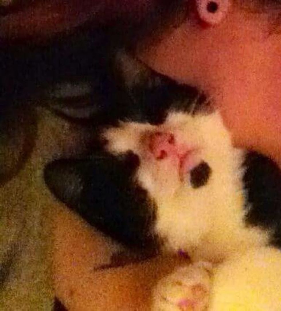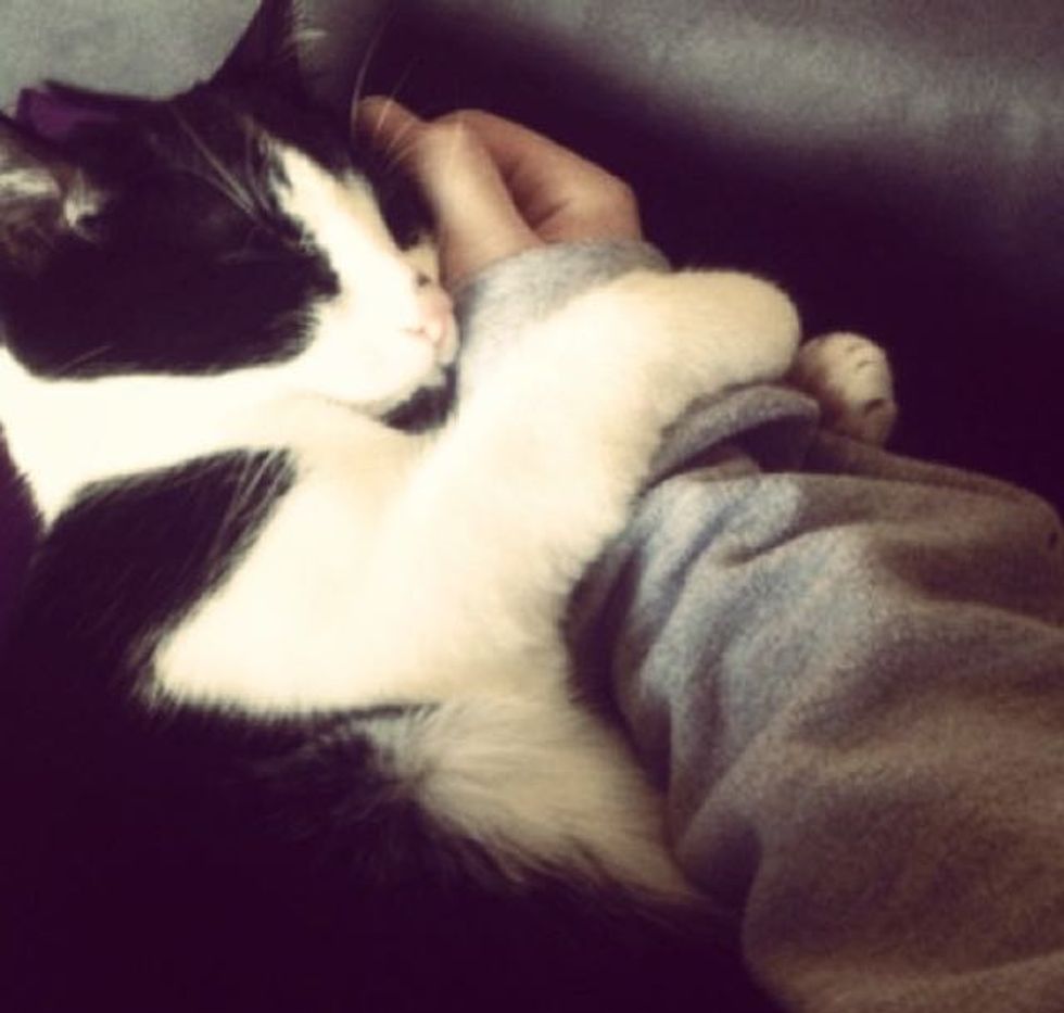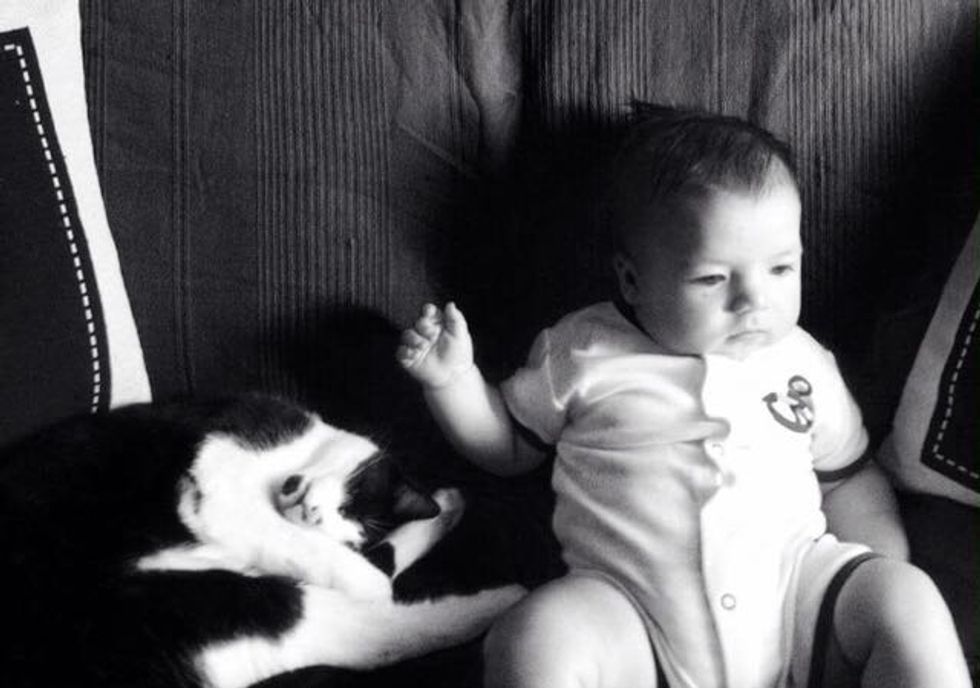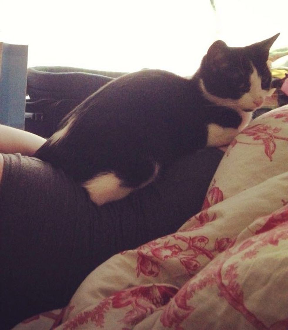 When Alyssa was 8 weeks pregnant with her first child, she came across a tiny stray kitten without a mother. Alyssa couldn't leave him there, so she took him home. They named him Kitten Face who never left her side throughout her pregnancy. "This beautiful boy became my bestest friend in the whole world," she wrote.