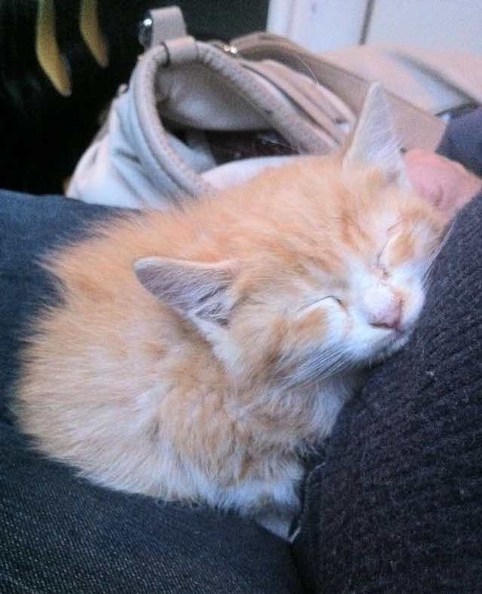 A kind young man spotted a tiny ginger kitten wandering on the street on a rainy day. He stopped his car and went to help the little guy.