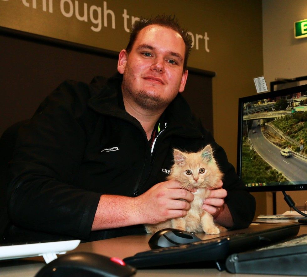 "Our maintenance crew managed to rescue the kitten safely and brought him back to our control room where we kept him warm and called The Lost Dogs' Home," Andrew Eckersley, CityLInk Road Operations Manager, said.