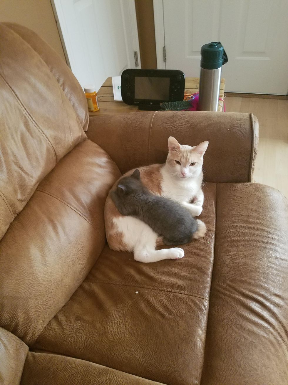 "My daughter named her after the Mario character, and I think it fits. Frank, my other cat, has gone into Daddy mode. It's cute."
