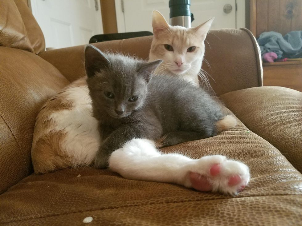 They gave a little neighborhood stray a new home, and she immediately snuggled up to their family cat and made him her new cat dad.