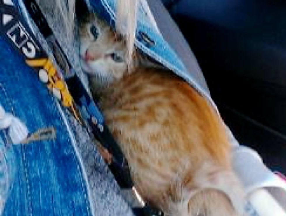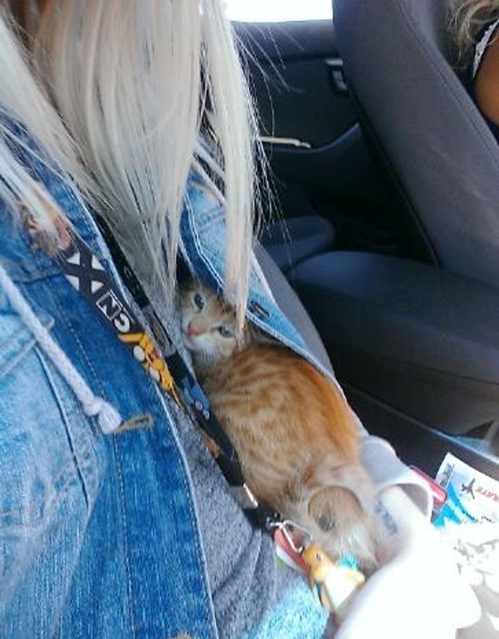 A little ginger kitten was so scared that he hid himself in his rescuer's jacket and didn't want to move. A few hours after arriving in his new home, everything changed.
