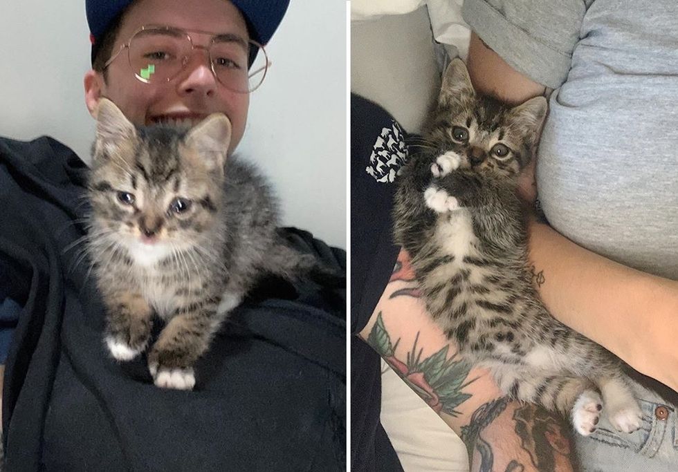 The sweet kitten was so happy to have friends that he started following them around, demanding attention and cuddles. He refused to be alone and insisted on staying close to them. Caleigh didn't have the heart to say no, knowing deep down that it was meant to be.
