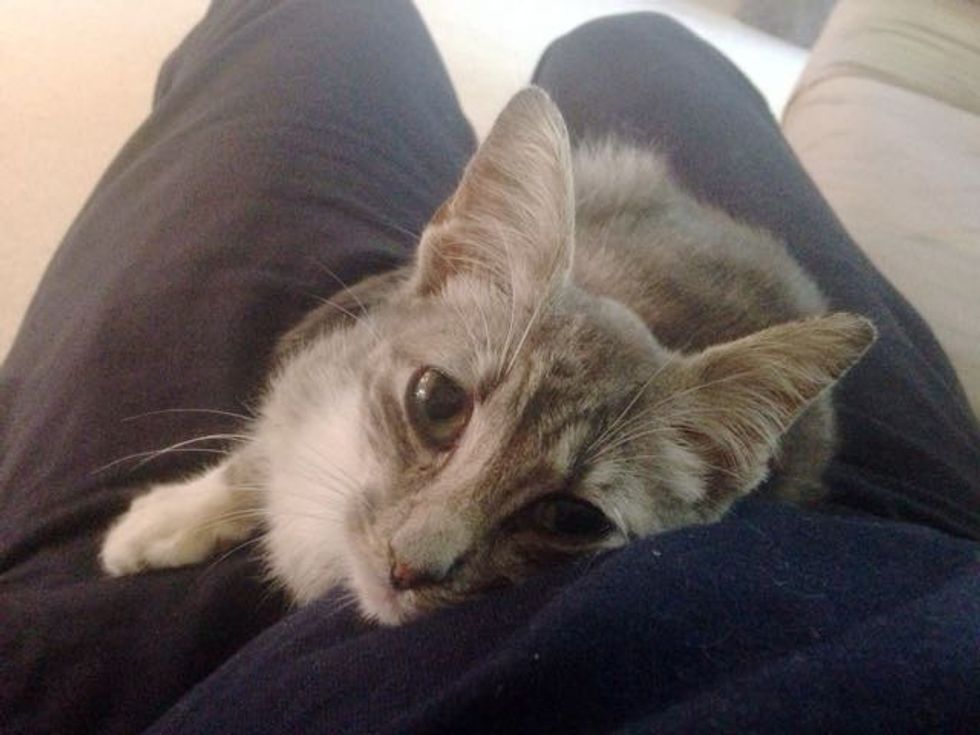 All he had done since I met him a few hours before I called them was try and sit on my lap, climb up onto my shoulder and rub against my legs purring as loud as he could. So after a little convincing my mom agreed she could take care of him for a few days, or at least until he was better. So I took Ash to my parent's house and let my mom meet him, all he did for most the night was sit on my lap coughing and sneezing but you could tell he was appreciative, especially after you fed him, probably the first time he'd ever been able to tell he was full.