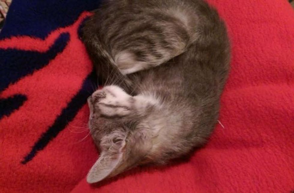 Reddit user Ephraim325 shares the story with Love Meow: "We are a rural volunteer/paid by call department, normally only have one guy that stays at the station, and over the last month or so he had been feeding a pack of kittens that a mother had hidden in our charcoal grill midsummer. I suspect this little fella was one of them. He was clearly a runt and seemed to be on his own when I met him.