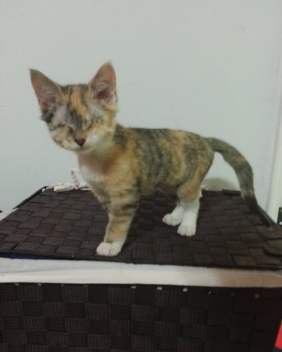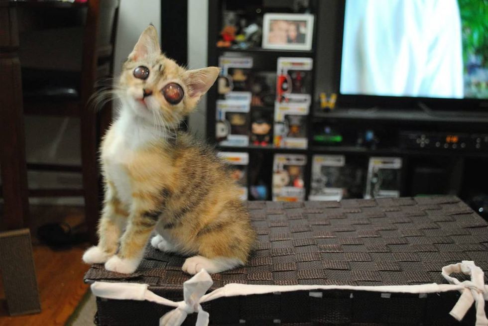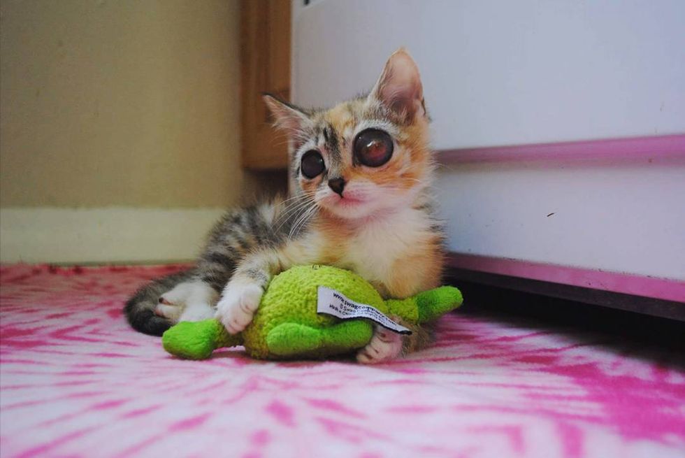 They rescued a tiny kitten with frog-like eyes and an amazing fight to live.