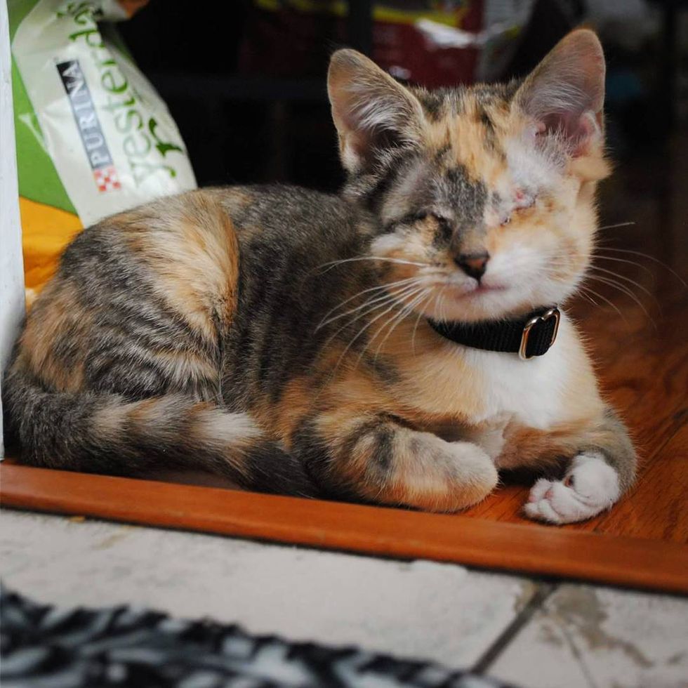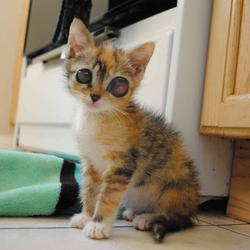 After many trips to the vet, they concluded that Oomi needed surgery to remove her eyes, but she would have to wait until she was big enough to undergo the operation.