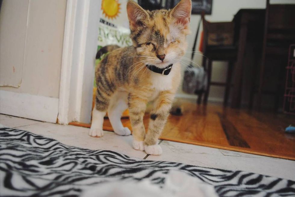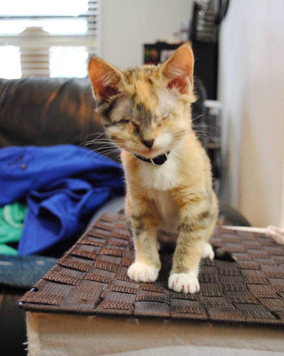 The little miracle kitty has already mapped out her house and can navigate like a pro with her "super power".