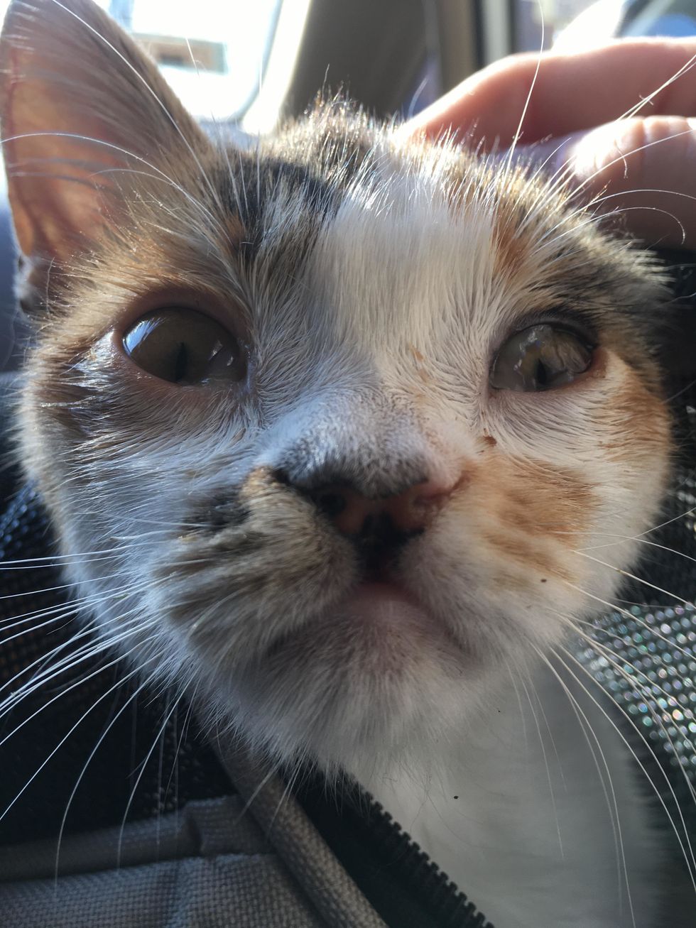 The sweet calico reached out to her rescuer, meowing and purring aloud for pets and attention. All she wanted was someone to love.
