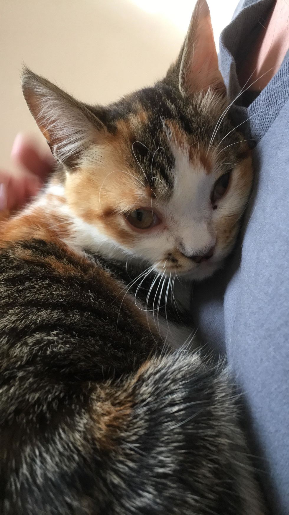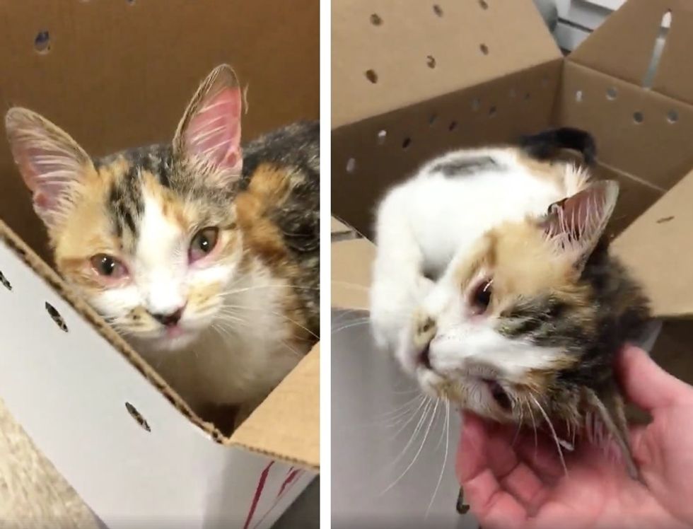 A stray calico kitten was found wobbling around the streets of Chicago, all alone. When she was given love and a few pets, she just couldn't get enough of it.
