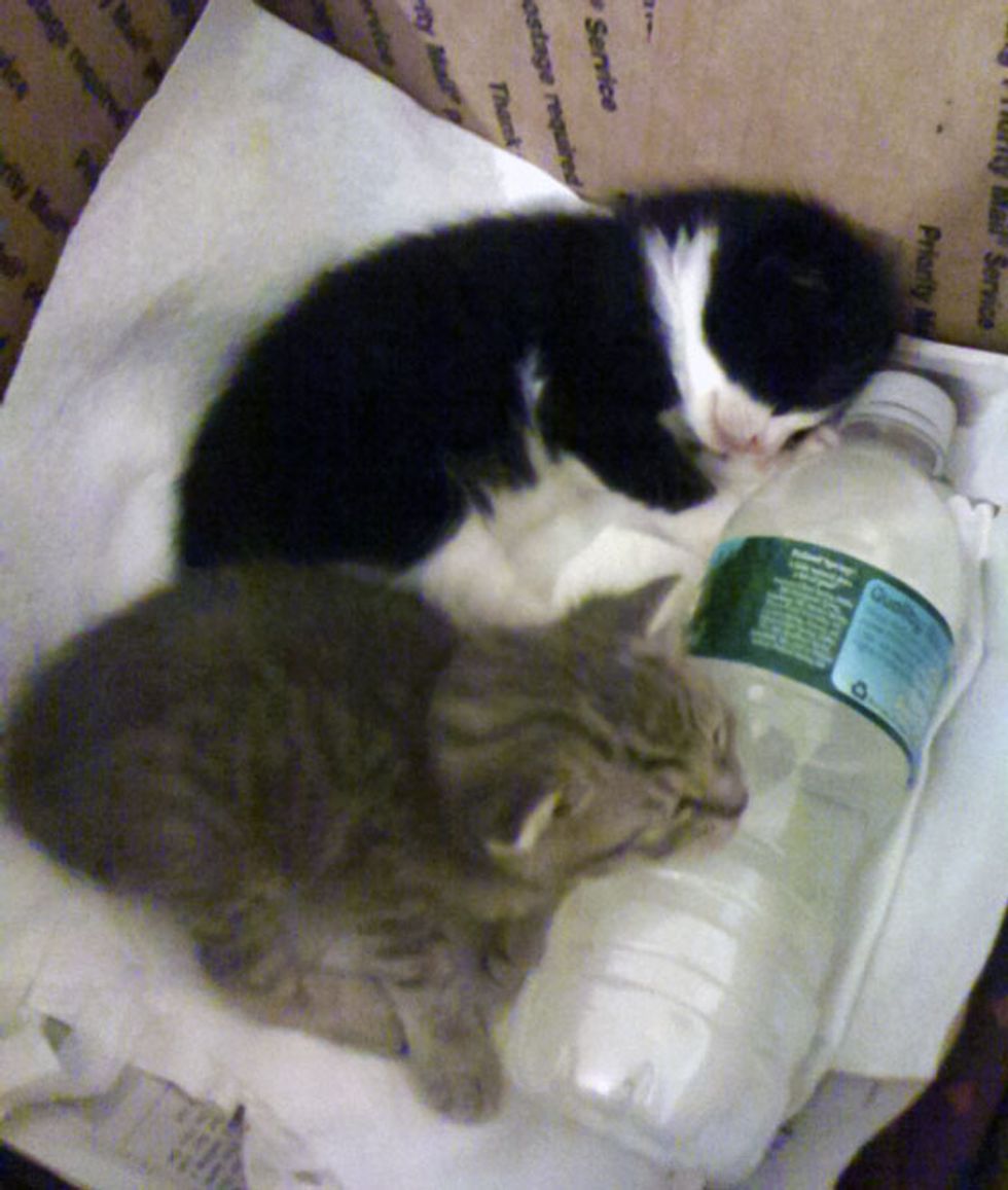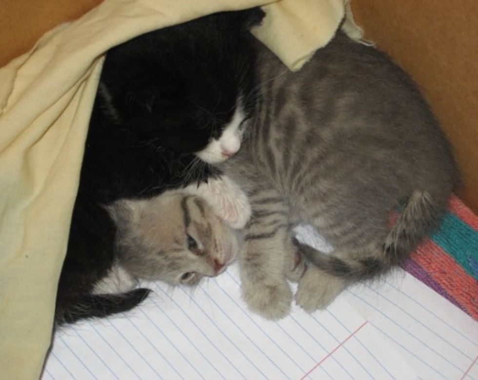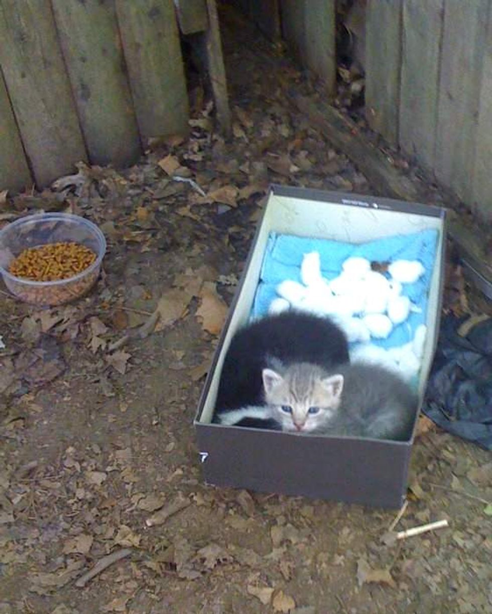 When he discovered the kittens, they were in the box, and quickly he noticed the food which was sitting untouched. He realized that it was the wrong food for the kittens. "I found them in a cardboard box with the cotton balls and a bowl of food that was too big for them. I brought them home and got them cleaned because they had fleas, fed them some kitten milk and it went from there. [They] got vaccines and spayed and neutered. I've had them for about 4 years now and they [are] still cute as ever," Freddocini added.