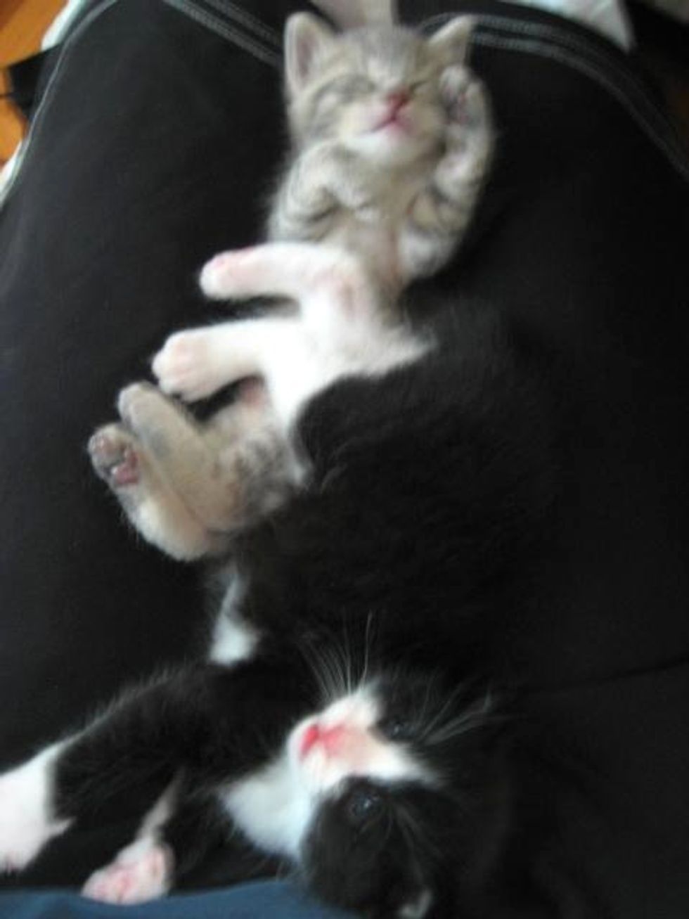A kind person found these two little helpless kittens behind his apartment, sitting in a box with a bowl of food that wasn't the right type for their size. Even though at that time, he was not allowed to have pets in his apartment, he took the risk to bring them home, and the rest is history.