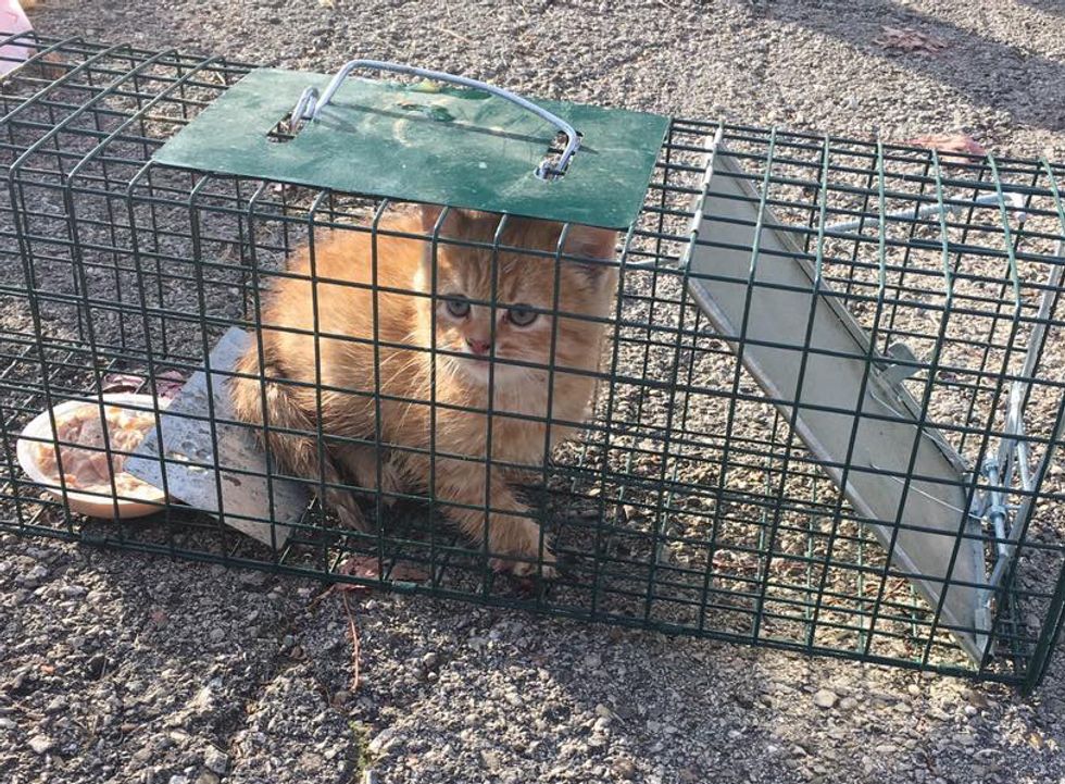 "Despite being alone, with no warmth or food for almost 48 hours, we got our kitten, safe in the trap. Lisa named the little guy Piper."