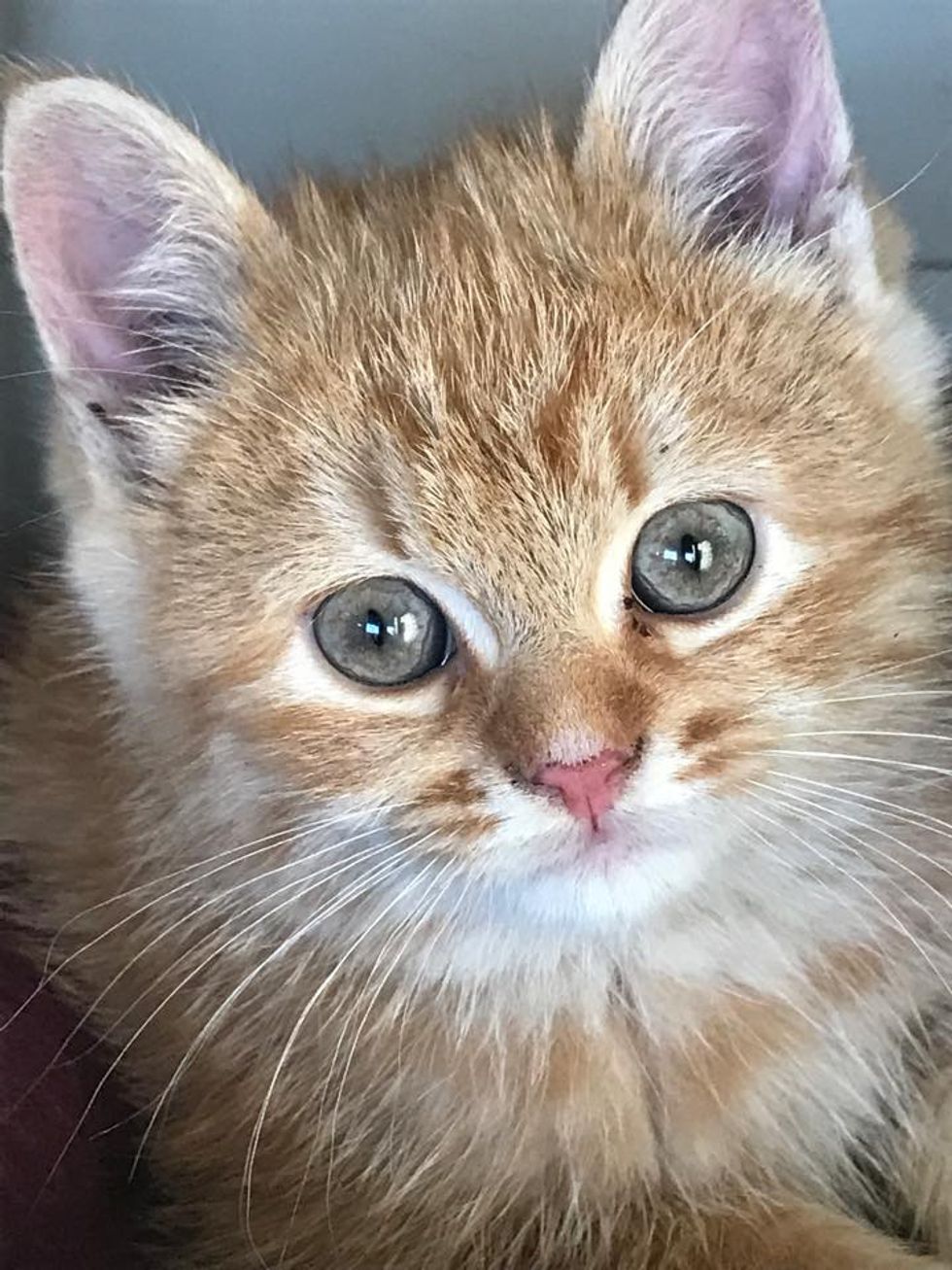 Stacy climbed back down the manhole to retrieve the trap. When she handed it over to another rescuer, they saw a beautiful ginger kitten inside, safe!