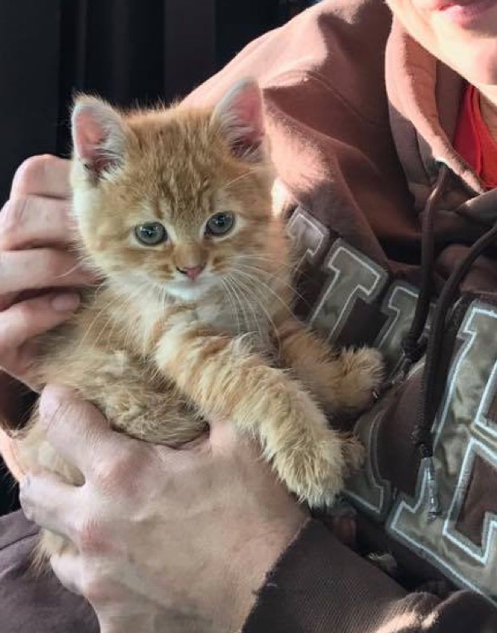 Meanwhile, they were able to get the mama cat in a carrier and also found her second baby (named Riley) who was hiding in the bushes.