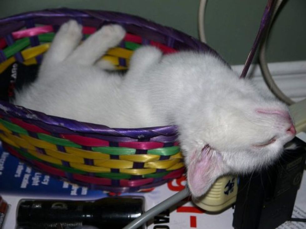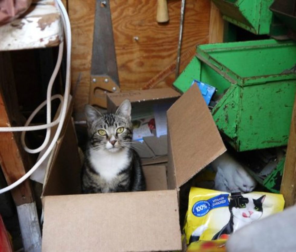 "This stray cat would always find a time to see me because I would give her food and stroke her. She was gone for more than one month and then I found her and her baby in the cabin. I heard the landlord said that the kitty was born by another stray cat in the same place. The kitty is very protective. I remember last year I spent a few weeks (starting) from giving food, touching to finally catching her, though it was almost the first time I caught a cat. I will get the kitty spayed and try to find her and her kitten a home," said wingswing.