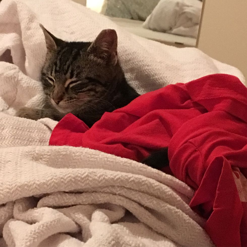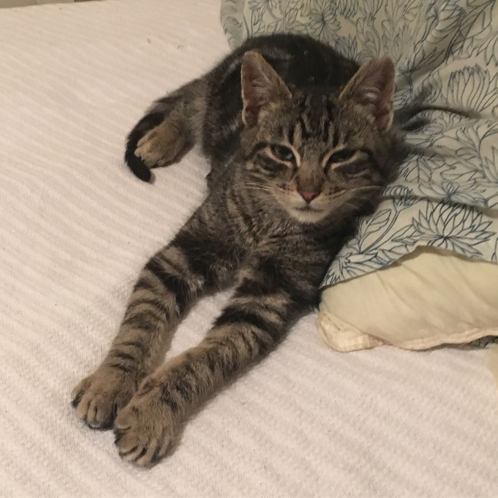 "Giorgio has been adopted by his foster parents! He started charming them on day one and they just didn't stand a chance. He loves helping them with laundry, napping on laps and chasing his feather!"