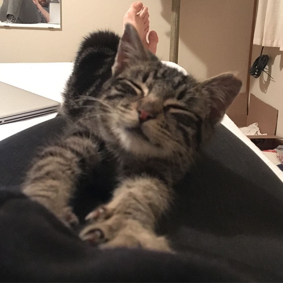 Though the kitten wasn't seeking attention, he was comfortable having Will as his company, sitting next to him. That's when he knew that he needed to find the kitten a foster home.