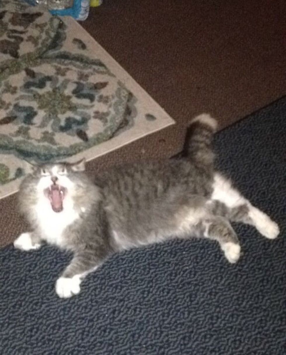 The long-haired grey cat came to the Appleby Dorms (sorority dorms) about a year ago, and has made it his home. Students fell in love with their unexpected furry friend and named him Srat cat or Sorority cat.