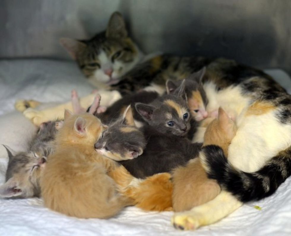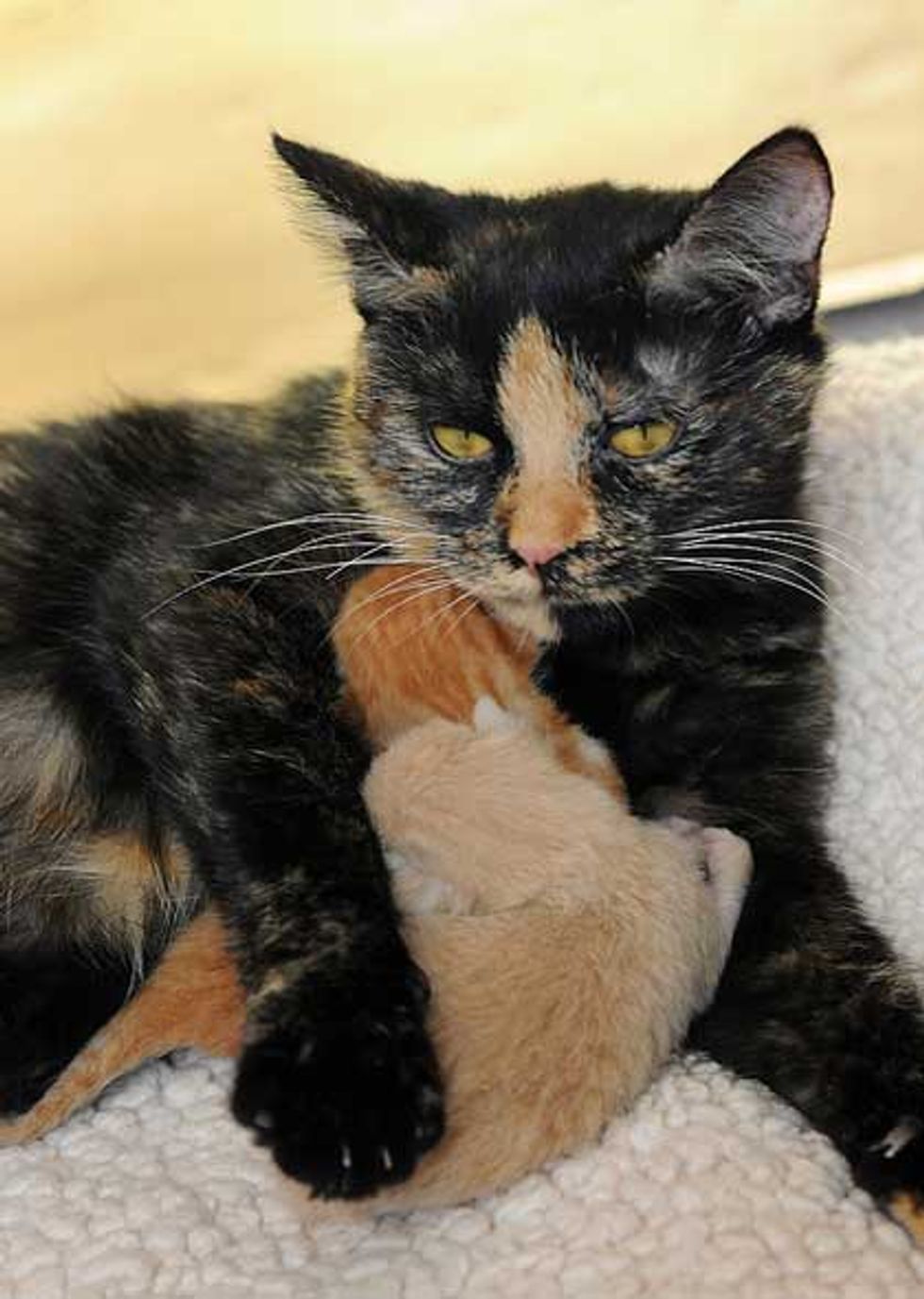 Norma the mama cat was found pregnant by the rescuers. "I picked her up from a humane society on Friday and she had her kittens two days later. She is being such a good mama and the kittens are doing so well," said Lindsey. Full story and photos.