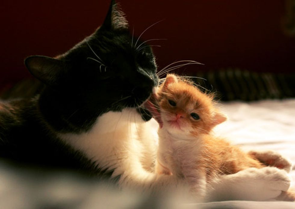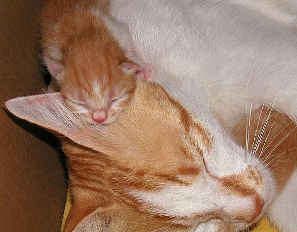 Cat mama Maxine adores her kittens especially the only ginger of the litter. They share a beautiful bond. Full story and photos.