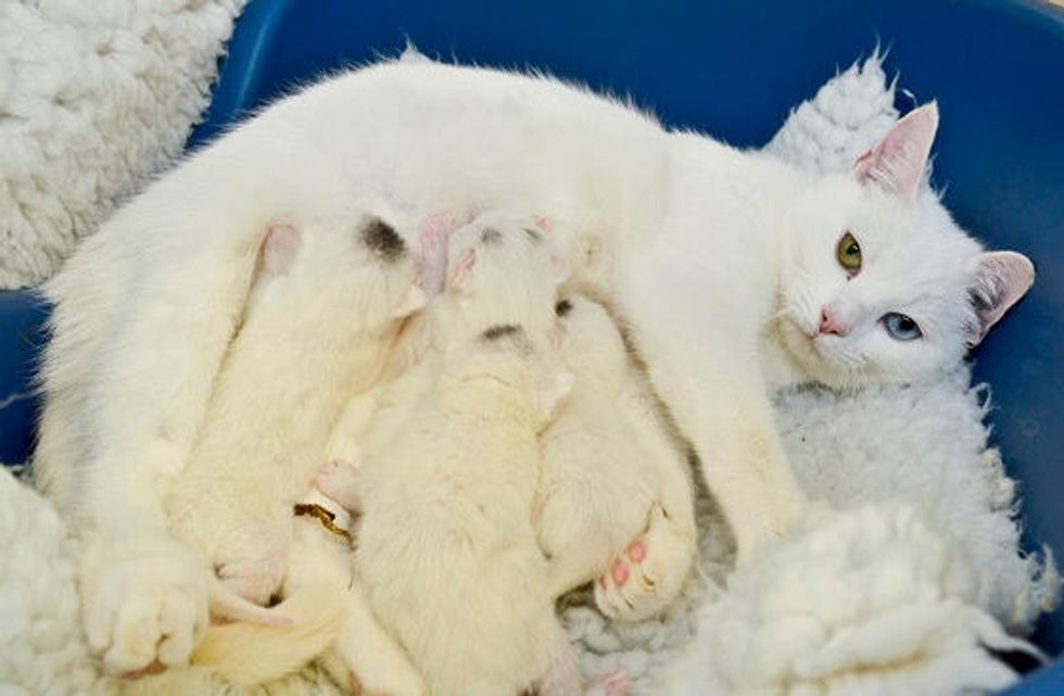 A lovely cat mama, Lillypops, was surrendered to Cats Protection Bridgend Adoption Centre because her owner could no longer keep her. But she didn't just come to the shelter alone. She brought four others with her and they were born on March 1.