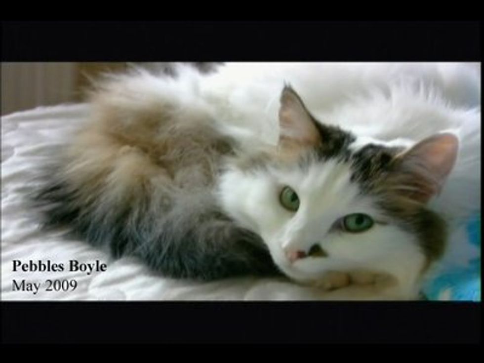 Pebbles is a 10-year-old long-haired kitty with a gorgeous face. She has spent most of her life living in the old house with Susan Boyle. In fact, Pebbles is so special to Susan Boyle that according to News Of the World, Susan said "I'm the wee wifey with the mop and the cat next door. It's what keeps me grounded - remembering I am just that wifey. And Pebbles would hate to live anywhere posh."