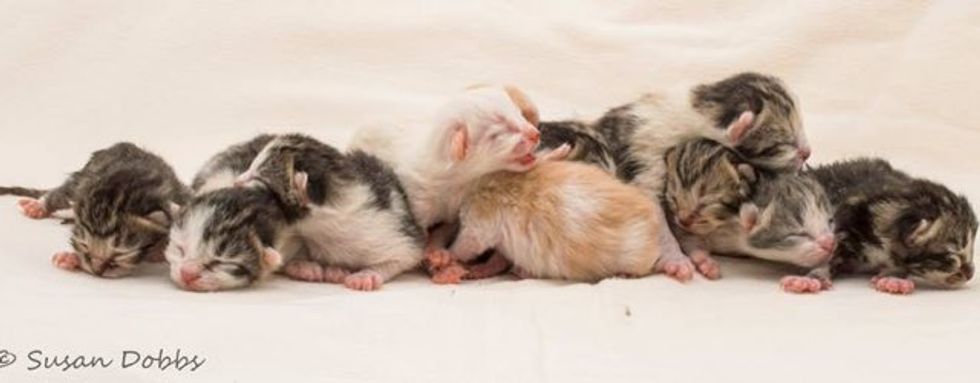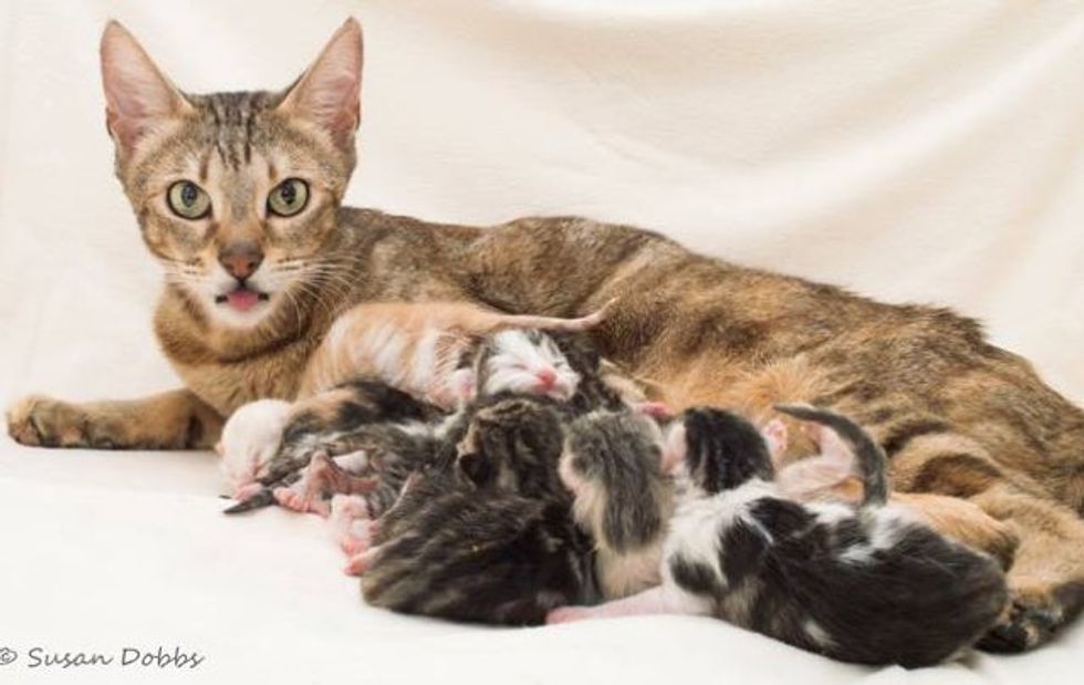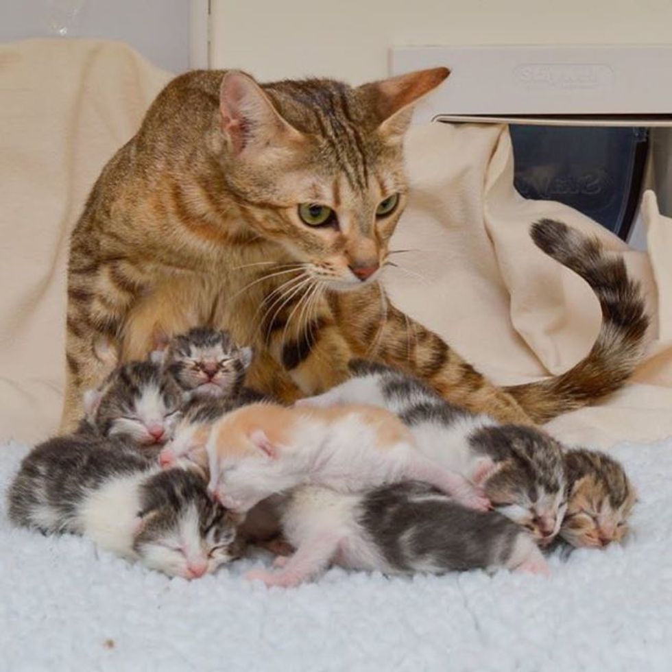 "Donatella has given birth to 10 kittens! This is the largest litter we have ever had born at the centre, she is going to have lots of TLC to help her cope with such a large litter!" Cats Protection wrote.