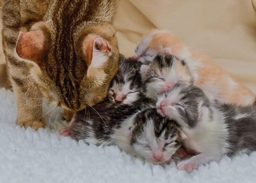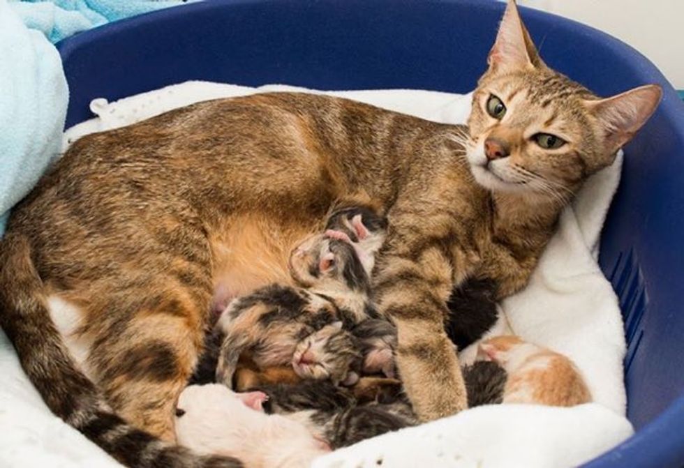 "Donatella is proving to be an amazing mother and is doing a great job of looking after her kittens. The smallest two were struggling to feed with so much competition for mum's milk, so they are going to be hand reared by one of our most experienced fosterer's to give them the best chance." (Cats Protection)