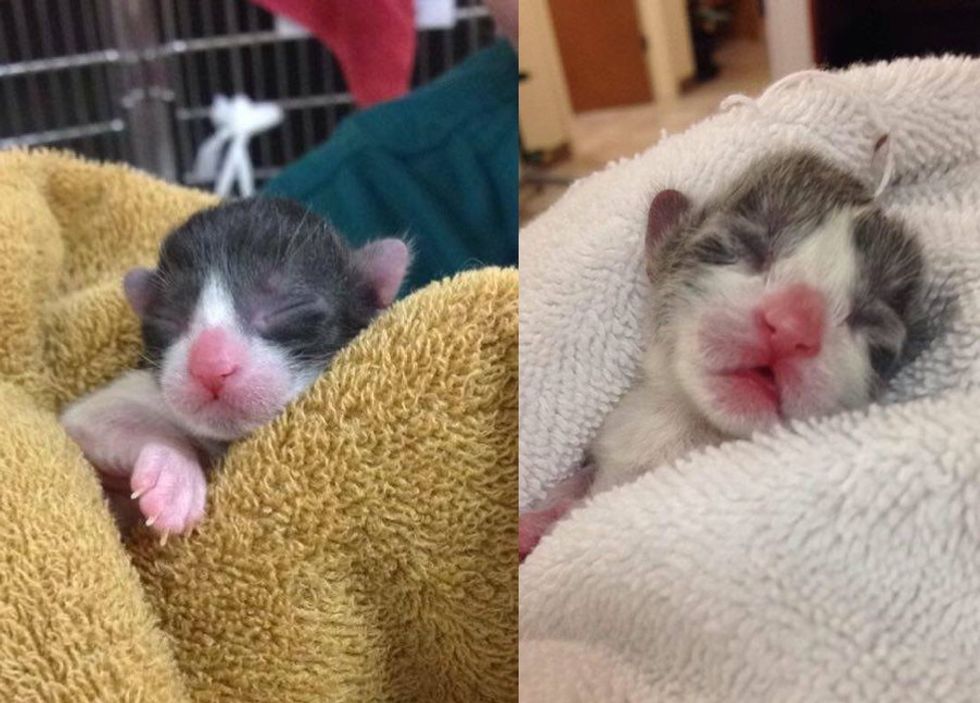 "She was pretty confused at first about where the kittens came from and what she was supposed to do with them. Her foster mom, Kelsey, bottle fed the babies every few hours while mama adjusted and now she has settled in and accepted motherhood!" Purrfect Pals told Love Meow.