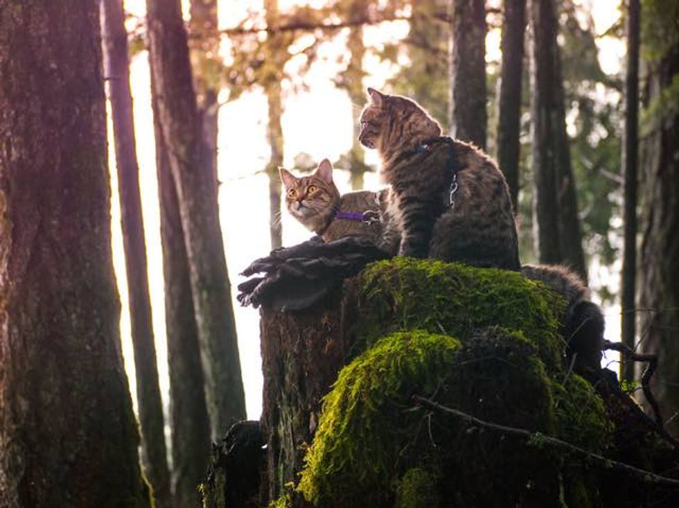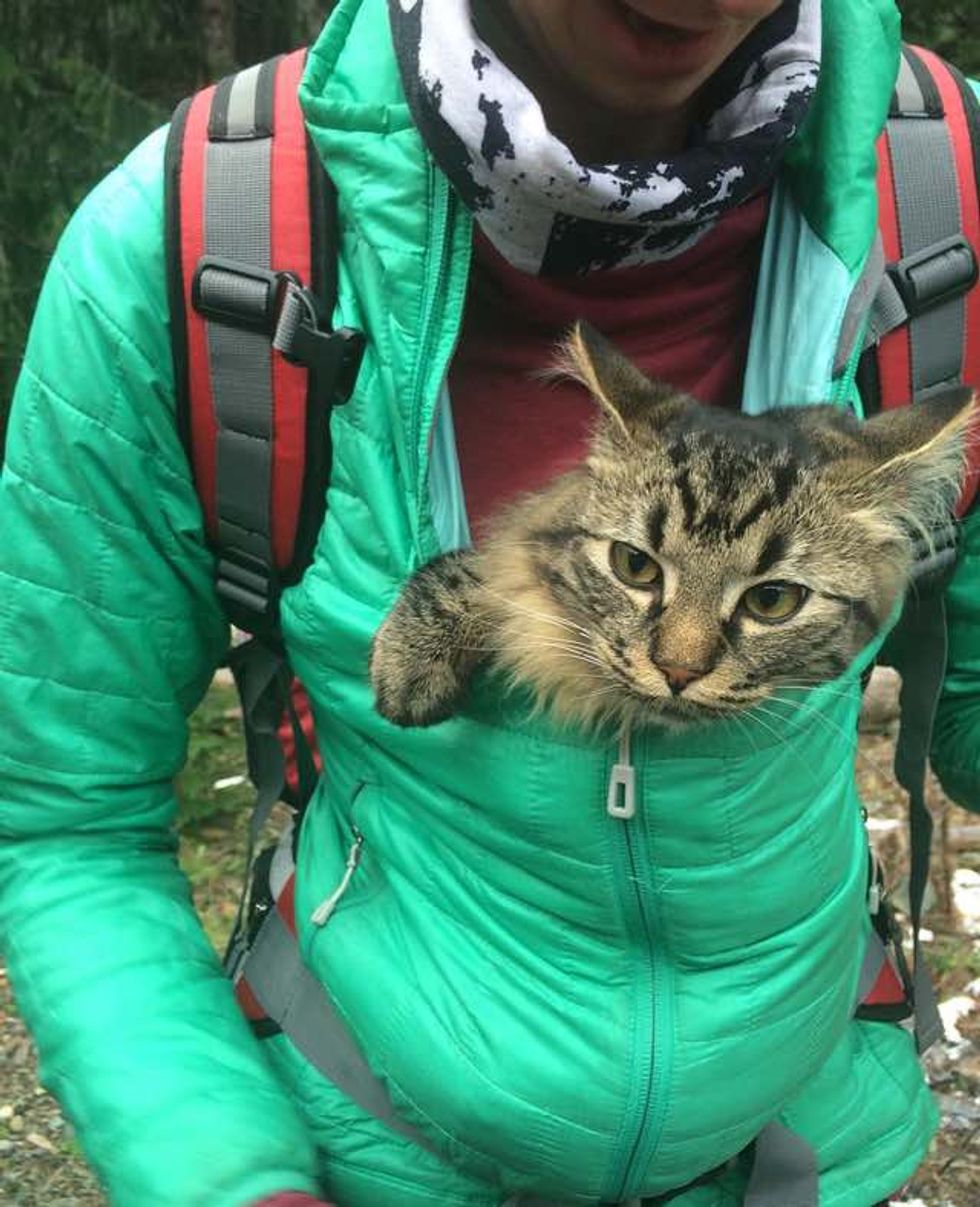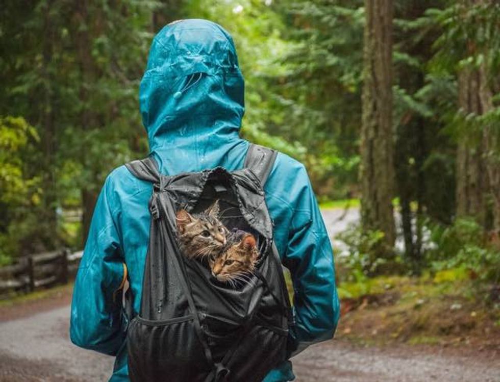 "We left on a camping, canoeing, and hiking trip and didn't have anywhere to leave them so we brought them with us!" they told Love Meow.