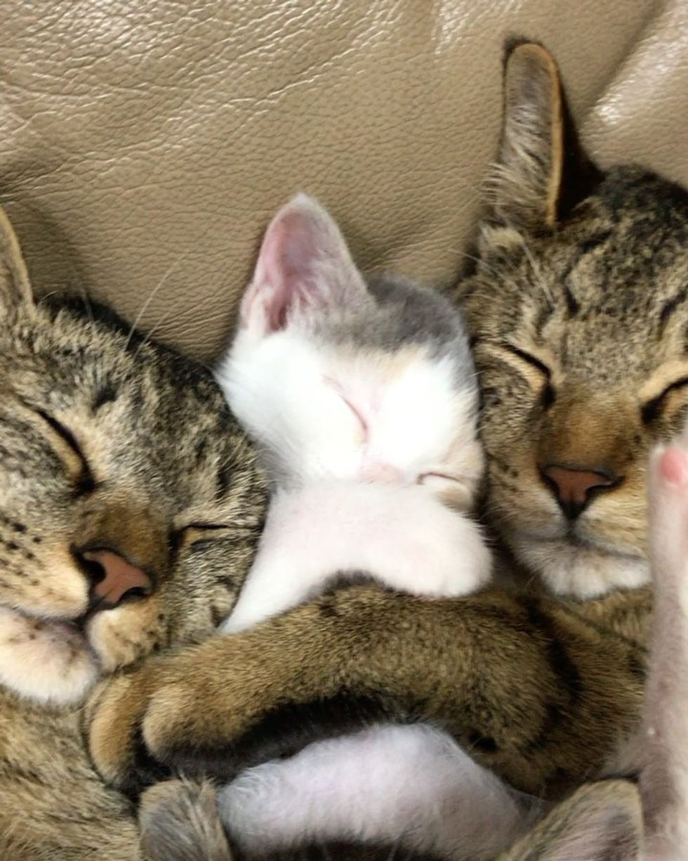 It didn't take long for the family to realize that they could no longer part with the kittens as their own cats had chosen them to be part of their family.