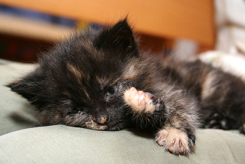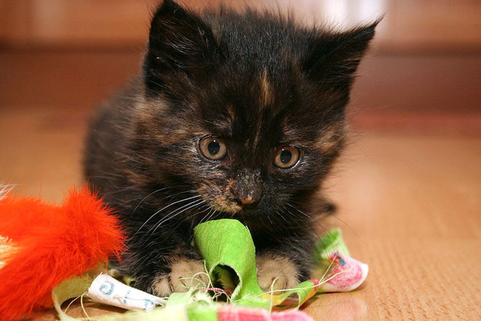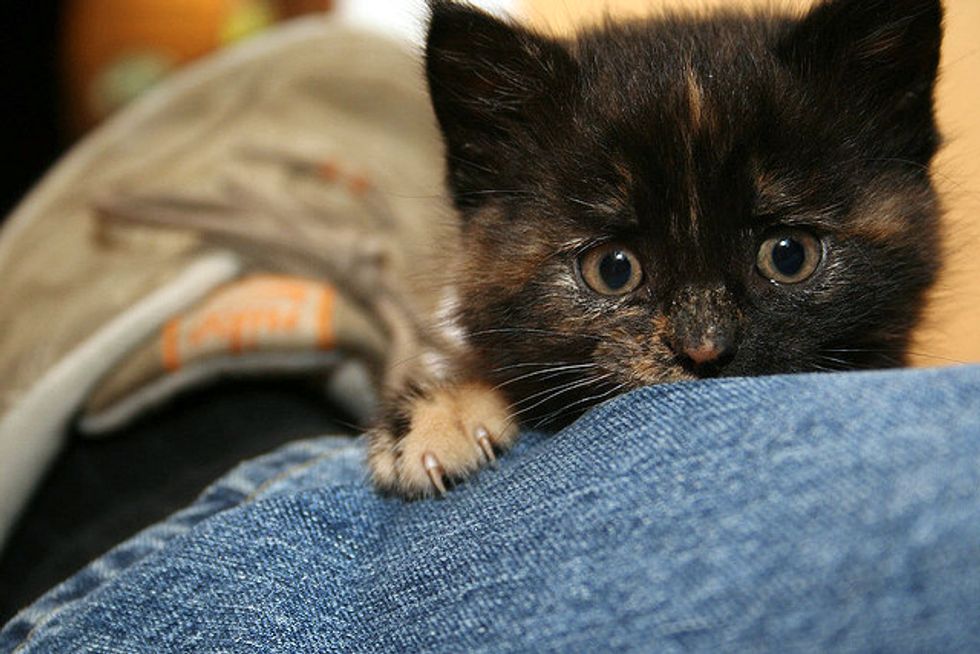 This little muffin is called Tabitha who came to her new home along with her brother Louie. There is something about tortie kitties that make them so beautiful. "She is a very adventurous girl who likes climbing up legs and chasing shoe laces and smelly shoes," said Paul.