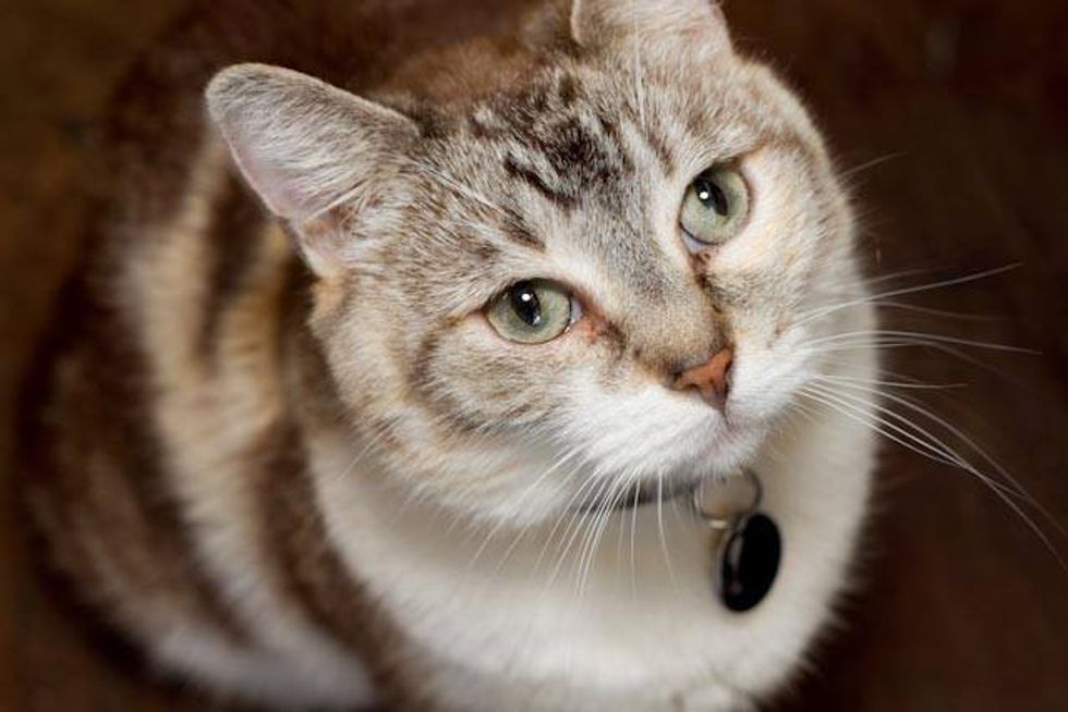 "She is a friendly, sweet cat who has an unassuming nature and enjoys being petted, especially on her chubby round cheeks."