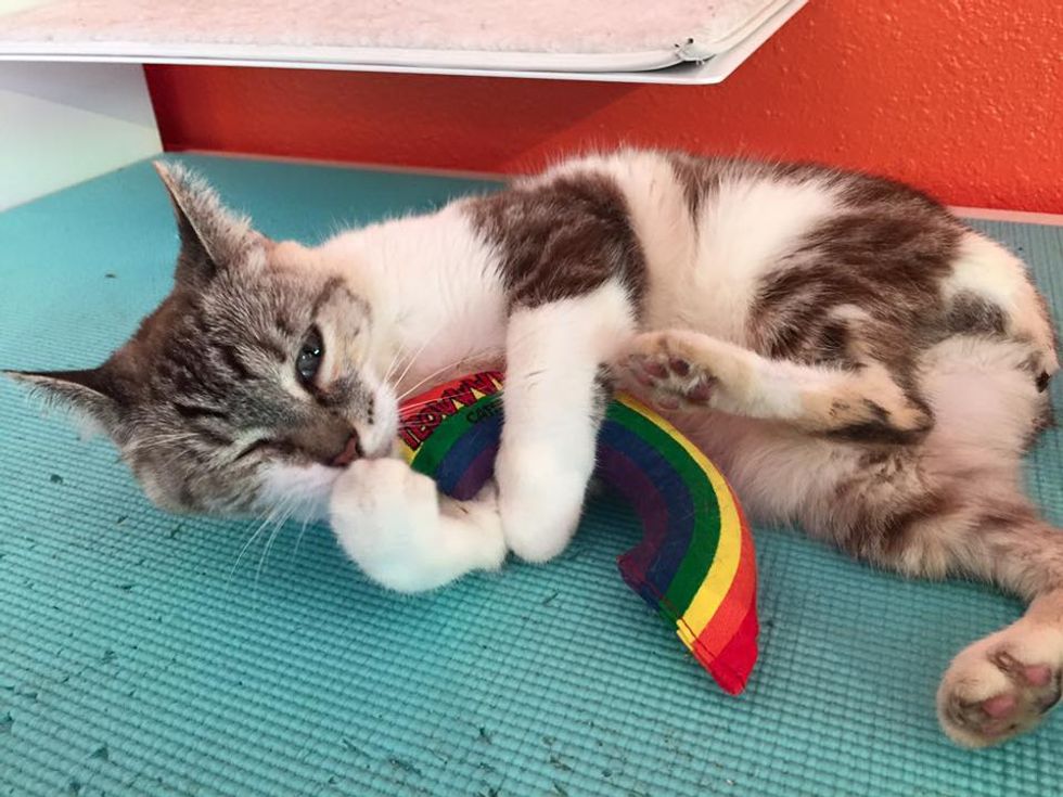 The sweet-natured kitty came to Sante D'Or, a rescue group in Los Angeles, California, when she was just 6 weeks old (in 2006).
