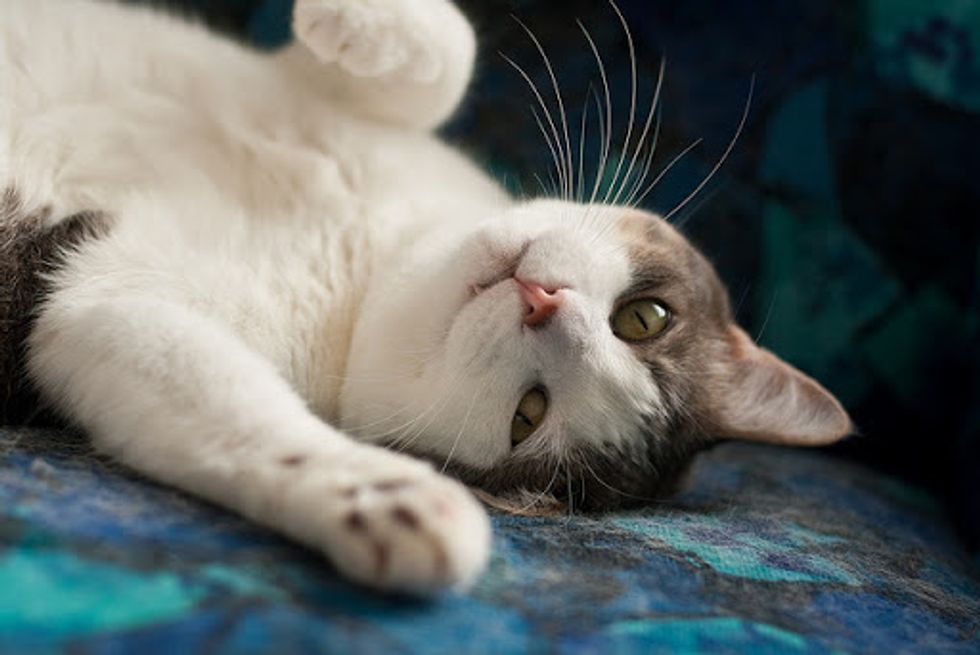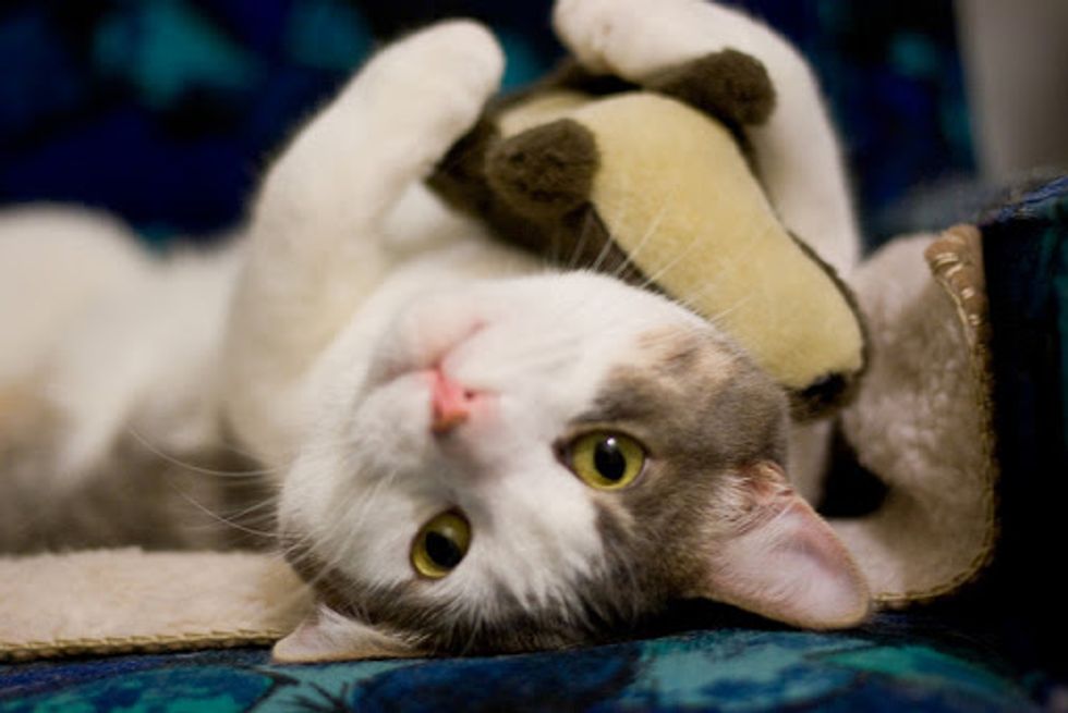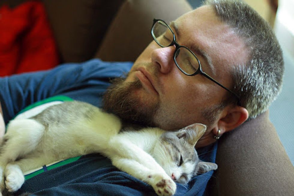 It has been almost three years since Caro adopted a little sick kitty they named Teek. "He started out with us weighing barely two pounds but with sessions in a nebulizer, plenty of meds and love, he very quickly ate his way to health. He's such a healthy eater that he's been on a diet for the last few months. Dude now weighs close to 17 pounds," said Caro.