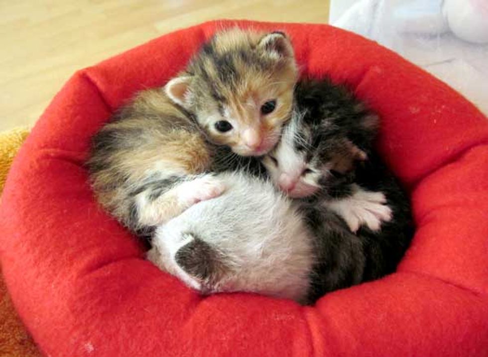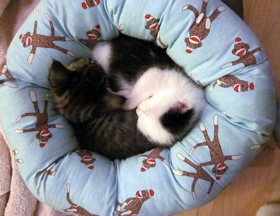 These tiny kittens were so small, their foster mom decided to get them mini sized beds. They fit perfectly!