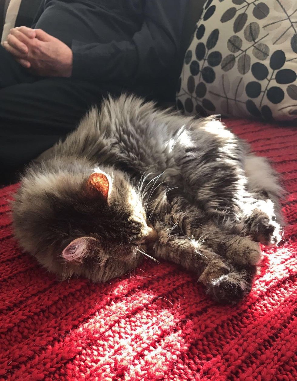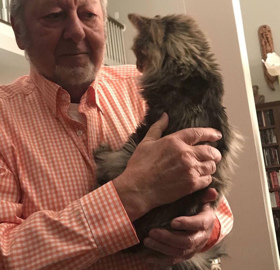 The sweet fluffy cat would curl up in his lap or sleep by his side, keeping him company at all times. Eventually Tiger and his endless cuddles grew on grandpa and the kitty crept his way into his heart.